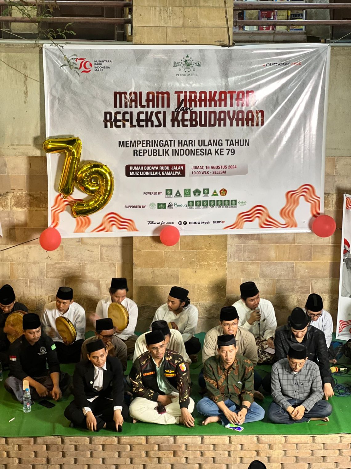 Sebagai masyarakat yang cinta tanah air, PCINU Mesir memperingati hari kermedakaan Indonesia ke 79 pada hari Jum’at, 16 Agustus 2024 dengan tema “Malam Tirakatan dan Refleksi Kebudayaan”. Acara yang bertempat di Rumah Budaya Nadi Rubu’ disambut hangat oleh para warga Nahdiyin untuk melepas rasa rindu mereka kepada Indonesia yang telah lama ditinggal merantau. Semarak kemerdekaan ini diawali dengan khataman al-Qur’an bersama mahasiswa JQH NU Mesir sebagai ungkapan rasa syukur kita kepada Allah SWT yang telah memberikan nikmat dan umur kemerdekaan yang panjang.